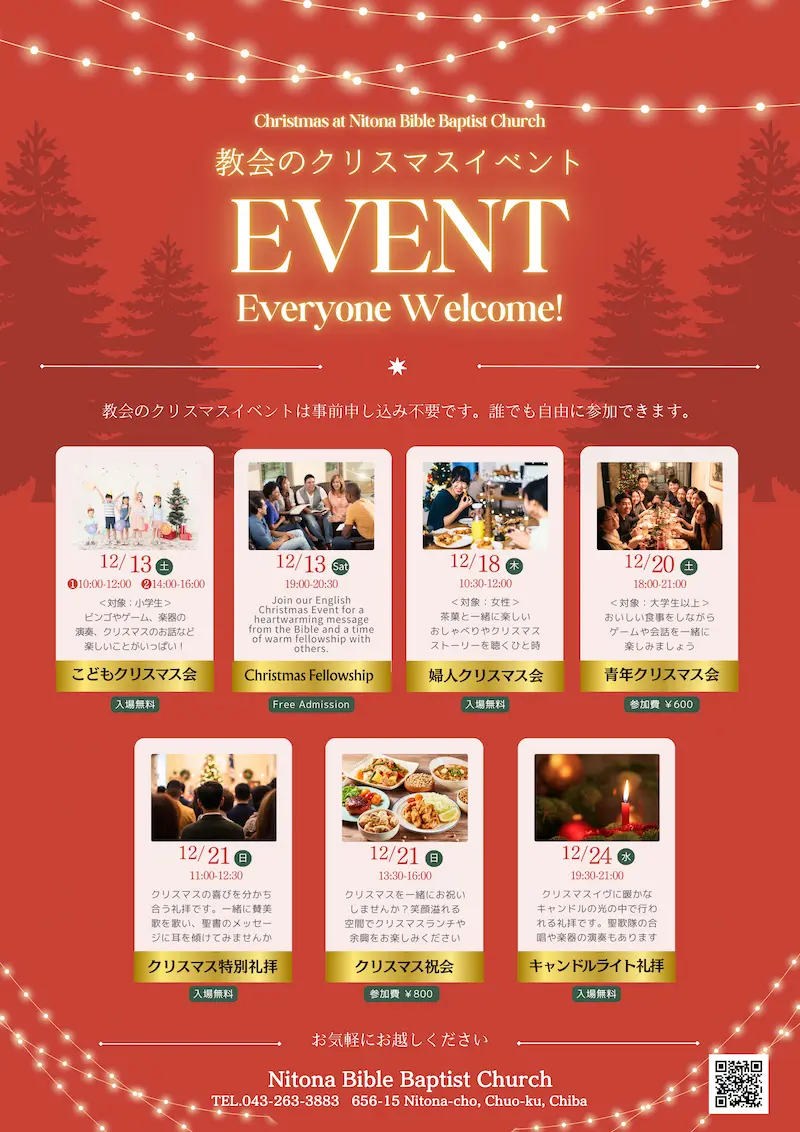 Come hang out with us at our English Christmas Event! You’ll get to hear a heartwarming message from the Bible, and it’s also a great chance to connect and enjoy some warm fellowship with everyone. We’d love to see you there!